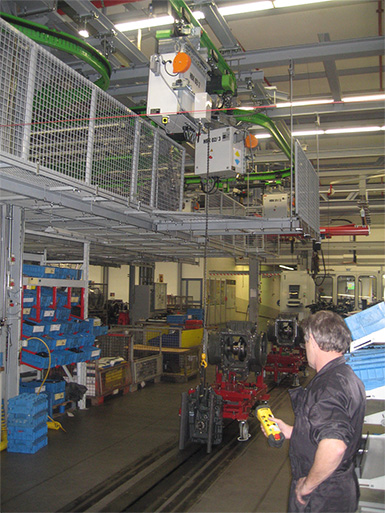 Die Funksteuerung ermöglicht die irrtumsfreie Handhabung einer am Arbeitsposten vorhandenen Last.