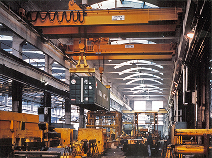 Mit gekoppelten Kranen können voluminöse, sehr lange und/oder schwere Lasten entlang des gleichen Hallenschiffs transportiert werden.